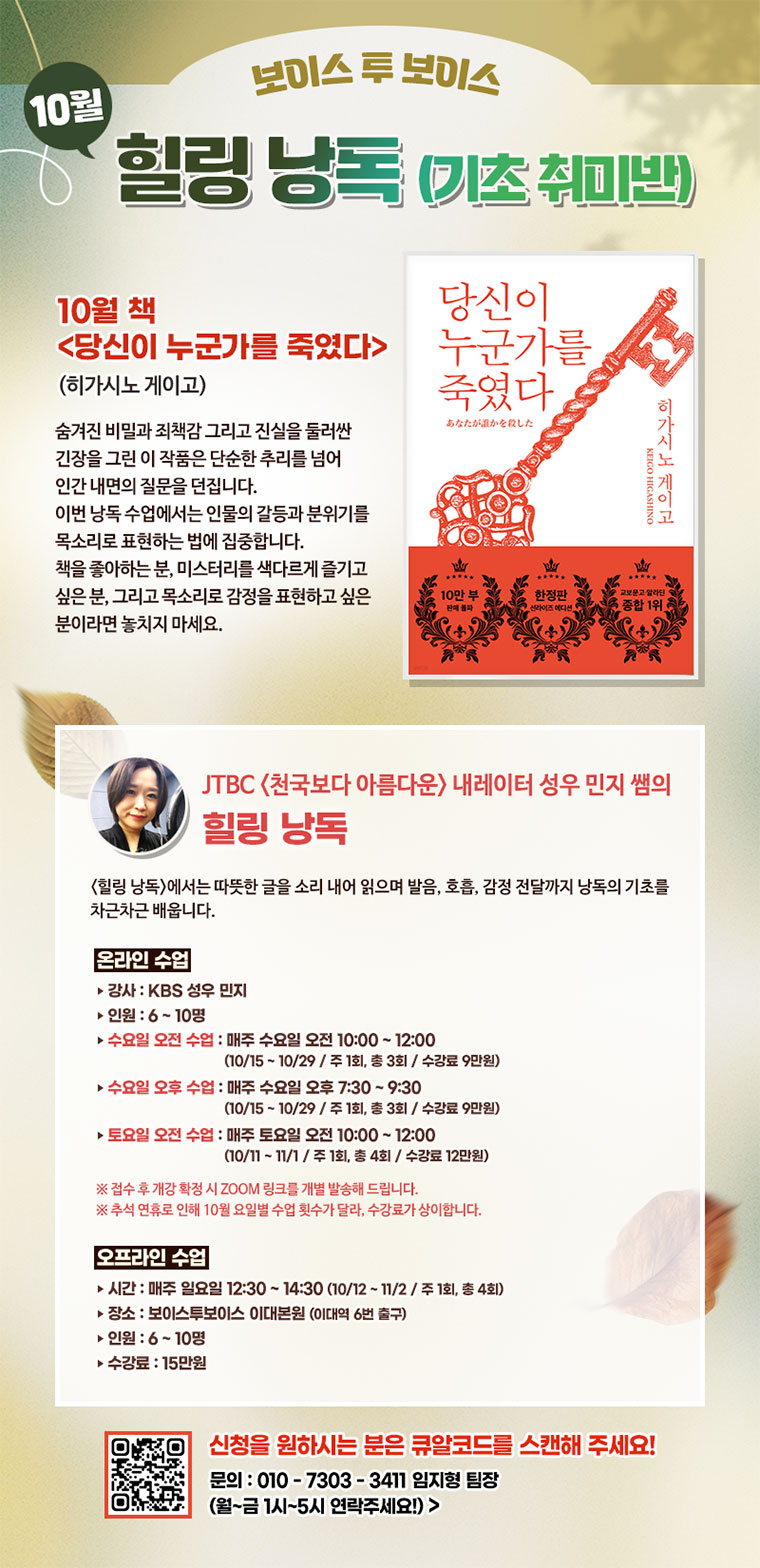 보이스투보이스 <힐링 낭독> 10월 수강생 모집
