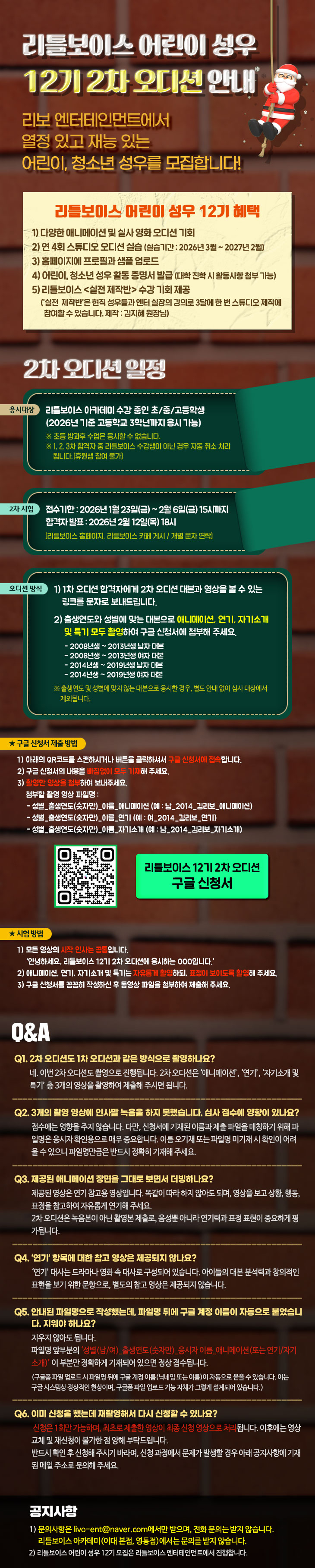 2026년 <리틀보이스 어린이 성우 12기> 2차 오디션 안내
