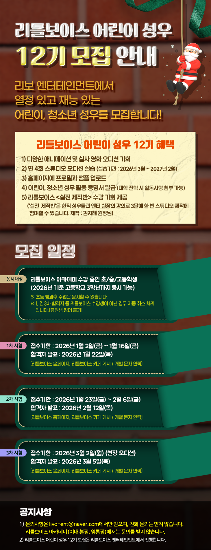 2026년 <리틀보이스 어린이 성우 12기> 모집 안내