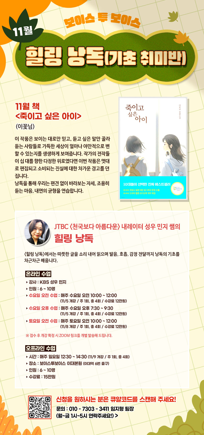 보이스투보이스 <힐링 낭독> 11월 수강생 모집